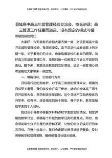 县域高中高三年部管理经验交流会,校长讲话:高三管理工作任重而道远,没有固定的模式可循.docx
