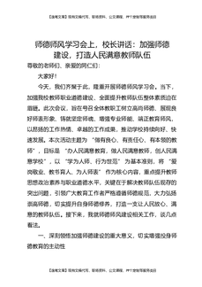 师德师风学习会上,校长讲话:加强师德建设,打造人民满意教师队伍.docx