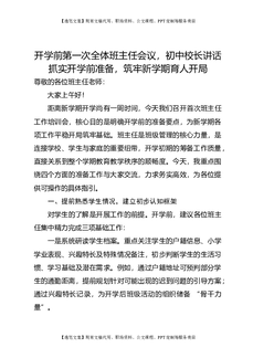 开学前第一次全体班主任会议,初中校长讲话:抓实开学前准备,筑牢新学期育人开局.docx