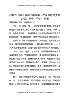 校长在2026届高三年级第一次全体教师大会讲话:坚守、守护、尽责.docx