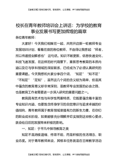 校长在青年教师培训会上讲话:为学校的教育事业发展书写更加辉煌的篇章.docx
