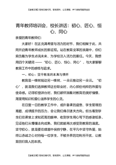 青年教师培训会,校长讲话:初心、匠心、恒心、同心.docx
