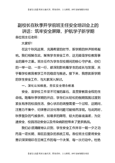 副校长在秋季开学前班主任安全培训会上的讲话:筑牢安全屏障,护航学子新学期.docx