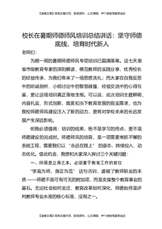 校长在暑期师德师风培训总结讲话:坚守师德底线,培育时代新人.docx