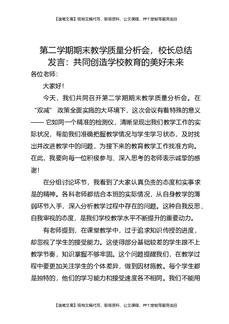 第二学期期末教学质量分析会,校长总结发言:共同创造学校教育的美好未来.docx