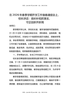 在2026年春季学期开学工作督查通报会上,校长讲话:扬长补短抓落实,守正创新开新局.doc