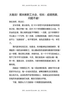 太敢说!期末教职工大会,校长:成绩亮眼,问题不避!.doc