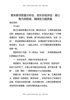 期末教学质量分析会,校长讲话:凝心聚力找短板,精准发力提质量.doc