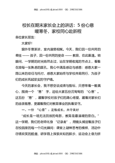 校长在期末家长会上的讲话:五“意”传情,家校共育向未来.docx