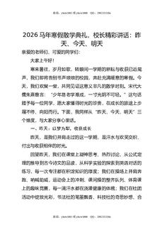 2026马年寒假散学典礼,校长精彩讲话:昨天,今天,明天.doc