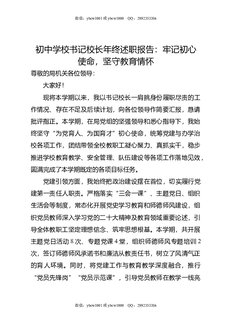 初中学校书记校长年终述职报告:牢记初心使命,坚守教育情怀.doc