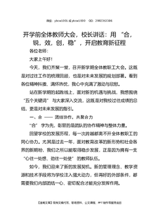 开学前全体教师大会,校长讲话:用 “合,锐,效,创,稳”,开启教育新征程
