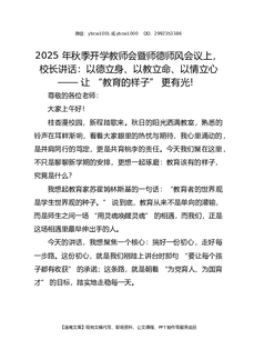 2025 年秋季开学教师会暨师德师风会议上,校长讲话:以德立身、以教立命、以情立心 —— 让 “教育的样子” 更有光!