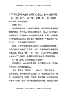 2025秋季开学全体教师收心会上,校长精彩讲话:以 “静” 定心、以 “实” 立教、以 “新” 赋能