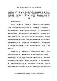 校长在2025年秋季新学期全体教职工大会上的讲话:聚力 “1234” 计划,共谱育人新篇章