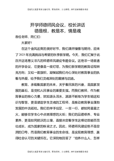 开学师德师风会议,校长讲话:德是根,教是本,情是魂!.docx