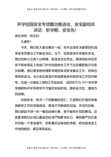 开学校园安全专项整治推进会,安全副校长讲话:新学期,安全先!.docx