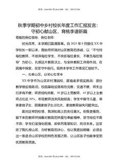 秋季学期初中乡村校长年度工作汇报发言:守初心献山区,育桃李谱新篇.doc