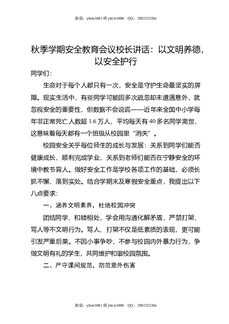 秋季学期安全教育会议校长讲话:以文明养德,以安全护行.doc