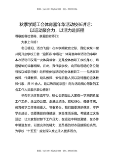 秋季学期工会体育嘉年华活动校长讲话:以运动聚合力,以活力赴新程.doc