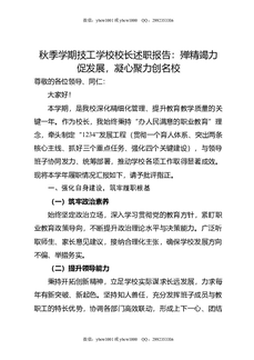 秋季学期技工学校校长述职报告:殚精竭力促发展,凝心聚力创名校.doc