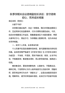 秋季学期末会议德育副校长讲话:坚守德育初心,筑牢成长根基.doc