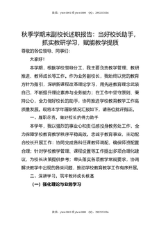 秋季学期末副校长述职报告:当好校长助手,抓实教研学习,赋能教学提质.doc