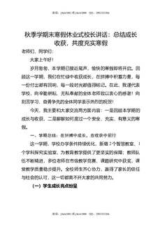 秋季学期末寒假休业式校长讲话:总结成长收获,共度充实寒假.doc