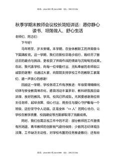 秋季学期末教师会议校长简短讲话:愿你静心读书,坦荡做人,舒心生活.doc