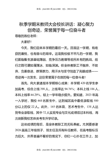 秋季学期末教师大会校长讲话:凝心聚力创奇迹,荣誉属于每一位奋斗者.doc
