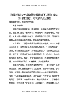 秋季学期末考试动员校长国旗下讲话:量力而行定目标,尽力而为赴征程.doc
