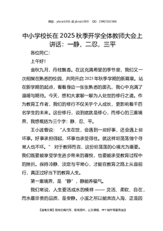 中小学校长在2025秋季开学全体教师大会上讲话:一静,二忍,三平