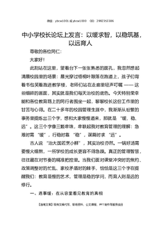 中小学校长论坛上发言:以缓求智,以稳筑基,以远育人