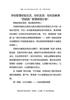 学校管理经验交流,校长发言:校长的教育四部曲管理感悟分享