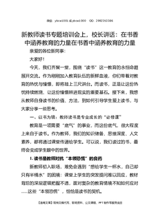 新教师读书专题培训会上,校长讲话:在书香中涵养教育的力量在书香中涵养教育的力量