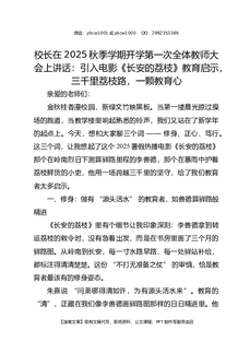 校长在2025秋季学期开学第一次全体教师大会上讲话:引入电影《长安的荔枝》教育启示,三千里荔枝路,一颗教育心