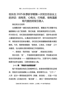 校长在2025秋季新学期第一次班主任会议上的讲话:肩有责、心有光、行有度,做有温度有尺度的班级引路人