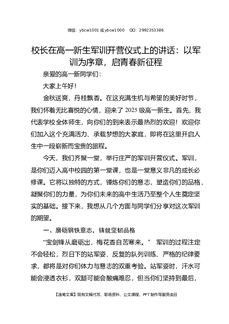 校长在高一新生军训开营仪式上的讲话:以军训为序章,启青春新征程