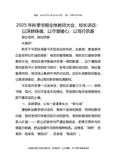 2025年秋季学期全体教师大会,校长讲话:以深耕铸魂,以守望暖心,以笃行筑基