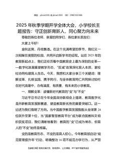 2025年秋季学期开学全体大会,小学校长主题报告:守正创新育新人,同心聚力向未来