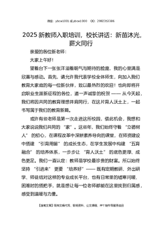 2025新教师入职培训,校长讲话:新苗沐光,薪火同行