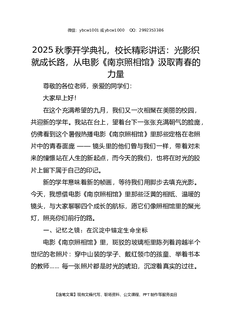 2025秋季开学典礼,校长精彩讲话:光影织就成长路,从电影《南京照相馆》汲取青春的力量