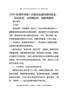 2025秋季开学第一次教师会暨师德师风会,校长发言:立师德标杆,铸教育模样