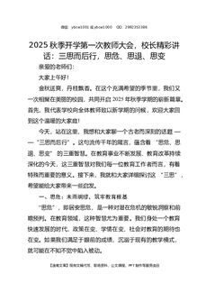 2025秋季开学第一次教师大会,校长精彩讲话:三思而后行,思危、思退、思变