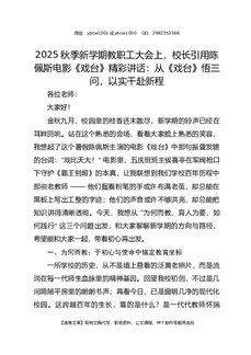 2025秋季新学期教职工大会上,校长引用陈佩斯电影《戏台》精彩讲话:从《戏台》悟三问,以实干赴新程