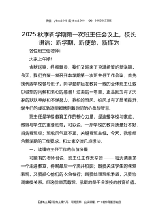 2025秋季新学期第一次班主任会议上,校长讲话:新学期,新使命,新作为