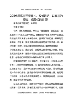 2026届高三开学典礼,校长讲话:以高三的姿态,成最优的自己!