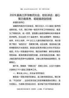 2026届高三开学教师大会,校长讲话:凝心聚力备高考,砥砺奋进创佳绩