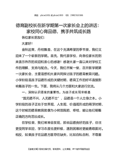 德育副校长在新学期第一次家长会上的讲话:家校同心育品德,携手共筑成长路