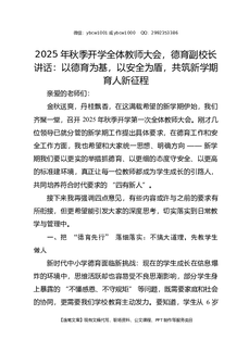 2025年秋季开学全体教师大会,德育副校长讲话:以德育为基,以安全为盾,共筑新学期育人新征程